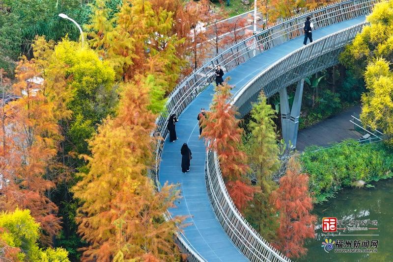 在福道公園的梅峰山地公園景點(diǎn),數(shù)百棵池杉悄然披上五顏六色的“彩裝”,成為冬日榕城的一道亮麗風(fēng)景,引來(lái)市民游客“打卡”賞景。