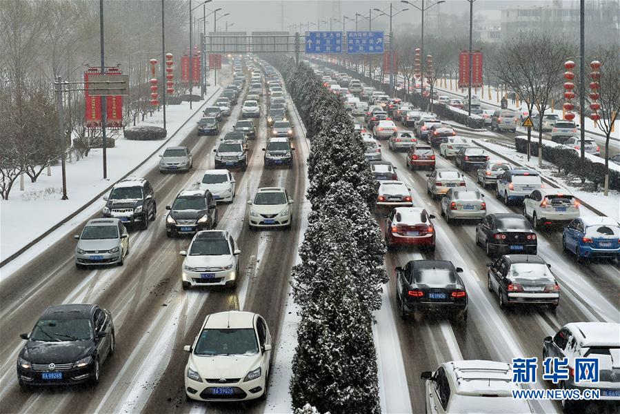 圖為雪中的太原市濱河?xùn)|路(2月21日攝)。當(dāng)日,山西省氣象局發(fā)布暴雪黃色預(yù)警,太原市區(qū)瑞雪普降。 新華社記者 曹陽(yáng) 攝 -