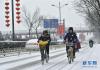 2月21日,在太原市濱河?xùn)|路,兩位市民冒雪騎行。當(dāng)日,山西省氣象局發(fā)布暴雪黃色預(yù)警,太原市區(qū)瑞雪普降。 新華社記者 曹陽(yáng) 攝 -