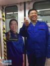 5月1日,全國(guó)勞動(dòng)模范楊遠(yuǎn)柱在“勞模地鐵專列”內(nèi)與自己的肖像照片合影。 “五一”勞動(dòng)節(jié)期間,一列“勞模地鐵專列”亮相長(zhǎng)沙地鐵1號(hào)線。該列車在車廂內(nèi)集中展示了由全國(guó)勞模、攝影家謝子龍拍攝的88位不同崗位全國(guó)勞模的肖像作品,旨在展示“勞動(dòng)最光榮、勞動(dòng)最崇高、勞動(dòng)最偉大、勞動(dòng)最美麗”的精神。新華社記者 明星 攝