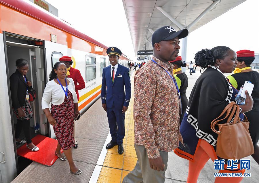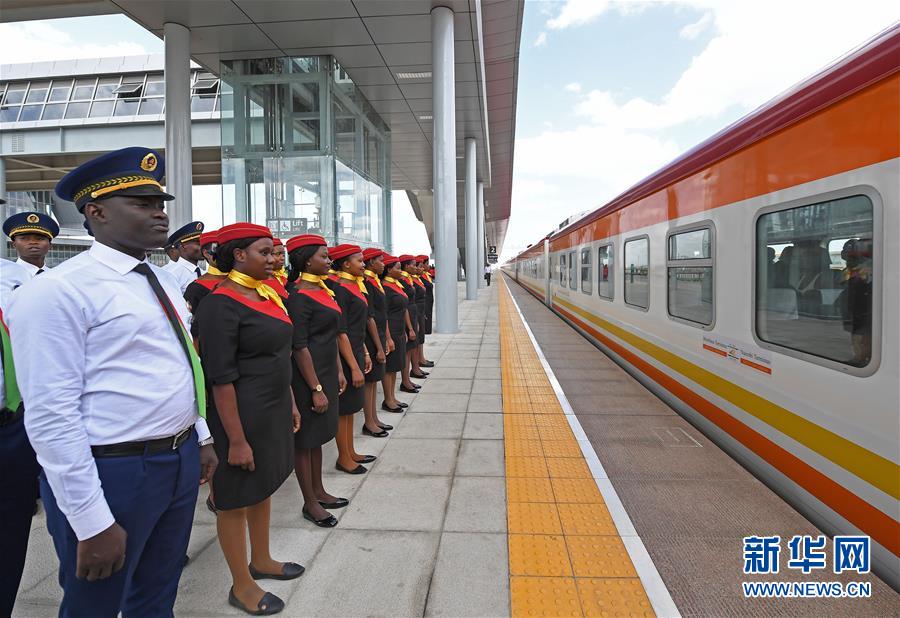 6月9日,在肯尼亞內(nèi)羅畢,乘務(wù)人員在內(nèi)羅畢火車站迎接旅客。蒙內(nèi)鐵路運(yùn)營(yíng)公司8日發(fā)布消息說(shuō),截至7日,由中國(guó)企業(yè)承建的蒙巴薩-內(nèi)羅畢標(biāo)軌鐵路(蒙內(nèi)鐵路)客運(yùn)服務(wù)運(yùn)營(yíng)已滿7天,累計(jì)發(fā)送旅客近1.2萬(wàn)人。新華社記者陳誠(chéng)攝 -