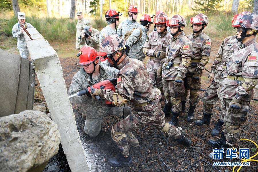 11月18日,在美國俄勒岡州錫賽德的國民警衛(wèi)隊(duì)拉里葉軍營,中美兩軍參演人員共同演練狹小空間救援。中美兩軍人道主義救援減災(zāi)聯(lián)合實(shí)兵演練當(dāng)日進(jìn)入第三天。此次聯(lián)合演練中美兩軍共派出200余人參加。新華社記者殷博古攝 -