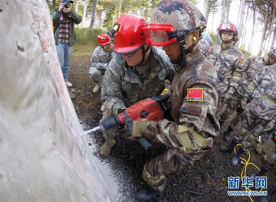 11月18日,在美國俄勒岡州錫賽德的國民警衛(wèi)隊(duì)拉里葉軍營,中美兩軍參演人員共同演練狹小空間救援。中美兩軍人道主義救援減災(zāi)聯(lián)合實(shí)兵演練當(dāng)日進(jìn)入第三天。此次聯(lián)合演練中美兩軍共派出200余人參加。新華社記者殷博古攝