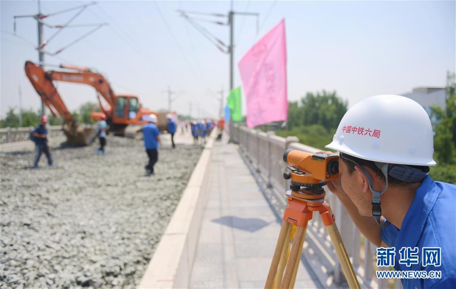 石濟客專引入石家莊樞紐工程的建設(shè)人員在進行測量作業(yè)(6月15日攝)。這一工程預(yù)計今年12月底全線通車,建成后石家莊至濟南乘坐高鐵只需90分鐘左右。今年開跑的“復(fù)興號”在京滬高鐵實現(xiàn)350公里時速運營,再次創(chuàng)造了領(lǐng)先世界的中國速度。目前,中國鐵路在勘察設(shè)計、工程建造、高速動車組、列車控制、牽引供電、運營管理、安全保障等領(lǐng)域已經(jīng)取得一系列自主創(chuàng)新成果,中國鐵路總體技術(shù)水平已邁入世界先進行列,部分技術(shù)處于世界領(lǐng)先水平。作為中國“新四大發(fā)明”之一,高鐵不僅安全、便利、快捷地服務(wù)著中國旅客,同時也驚艷著世界。新華社記者 王曉 攝 -