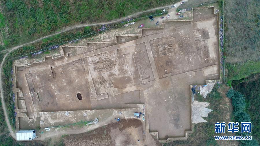 這是航拍的秦咸陽城胡家溝建筑遺址(資料照片)。近日,考古工作者首次在秦咸陽城遺址區(qū)域內發(fā)現(xiàn)秦代大型國家府庫遺存。這是繼20世紀70至80年代發(fā)掘秦咸陽宮遺址以來,在秦咸陽大遺址保護區(qū)內再次發(fā)現(xiàn)秦代大型官署建筑遺址。此次發(fā)現(xiàn)的遺址位于陜西省西咸新區(qū)秦漢新城窯店鎮(zhèn),地處秦都咸陽城宮區(qū)以西的胡家溝塬地。遺址建筑四面為夯土垣墻,墻體厚度約3米,寬19.5米,總長110米。發(fā)掘過程中出土了數(shù)量眾多的石質編磬殘塊,目前已在23件殘塊上發(fā)現(xiàn)了小篆“北宮樂府”等字樣,再次證實了秦代設樂府的史實。新華社發(fā) -