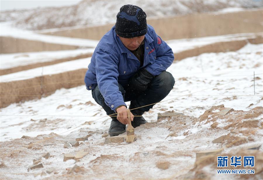 考古人員在秦咸陽城胡家溝建筑遺址考古工地上清理石磬殘塊(1月24日攝)。近日,考古工作者首次在秦咸陽城遺址區(qū)域內發(fā)現(xiàn)秦代大型國家府庫遺存。這是繼20世紀70至80年代發(fā)掘秦咸陽宮遺址以來,在秦咸陽大遺址保護區(qū)內再次發(fā)現(xiàn)秦代大型官署建筑遺址。此次發(fā)現(xiàn)的遺址位于陜西省西咸新區(qū)秦漢新城窯店鎮(zhèn),地處秦都咸陽城宮區(qū)以西的胡家溝塬地。遺址建筑四面為夯土垣墻,墻體厚度約3米,寬19.5米,總長110米。發(fā)掘過程中出土了數(shù)量眾多的石質編磬殘塊,目前已在23件殘塊上發(fā)現(xiàn)了小篆“北宮樂府”等字樣,再次證實了秦代設樂府的史實。新華社記者 李一博 攝