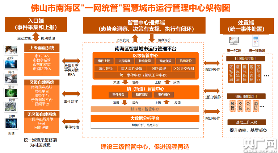 佛山市南海區(qū)“一網(wǎng)統(tǒng)管”智慧城市運(yùn)行管理中心架構(gòu)圖。(央廣網(wǎng)發(fā))