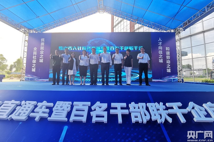 佛山市人社服務(wù)直通車暨百名干部聯(lián)千企啟動儀式現(xiàn)場。(央廣網(wǎng)記者 夏燕 攝)