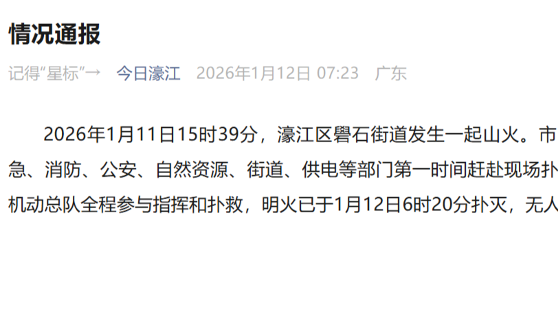 明火已于1月12日6時20分撲滅,無人員傷亡。
