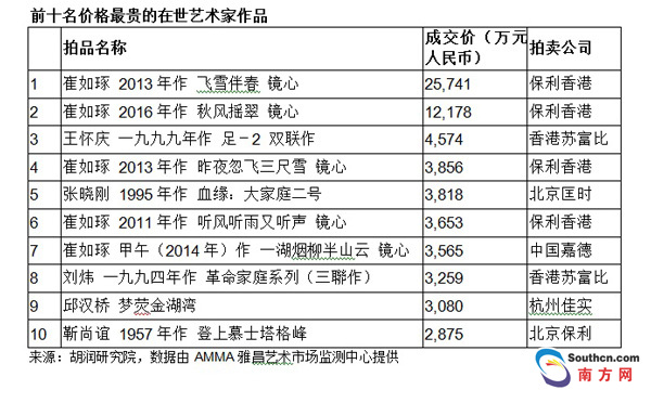 中國前10名藝術(shù)家成交額去年上漲74%