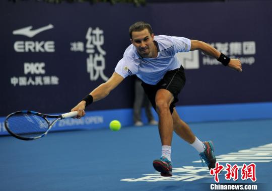 頭號(hào)選手俄羅斯東斯科伊在決賽中揮拍對(duì)陣衛(wèi)冕冠軍冠軍法比亞諾 華發(fā)供圖 攝