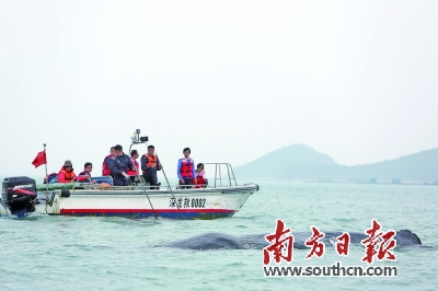 同時(shí),現(xiàn)場人員成立現(xiàn)場救護(hù)指揮部,統(tǒng)一協(xié)調(diào)指揮救護(hù)行動;并由中山大學(xué)海洋科學(xué)院方亮副研究員、廣東海洋大學(xué)深圳研究院廖寶林、深圳海洋世界魏鵬程、梁文兵等海洋生物專家組成的救護(hù)專家組立即研究緊急救護(hù)措施。