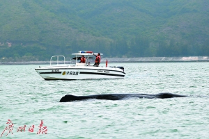 深圳邊防支隊官兵正在受傷擱淺的抹香鯨