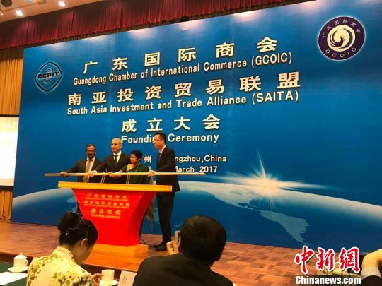 中新網(wǎng)廣州3月15日電 15日,由廣東省貿(mào)促會、廣東國際商會倡議發(fā)起的廣東國際商會南亞投資貿(mào)易聯(lián)盟在廣州正式成立。印度、巴基斯坦、斯里蘭卡駐廣州總領(lǐng)事館官員以及廣東省企業(yè)代表出席了成立儀式。