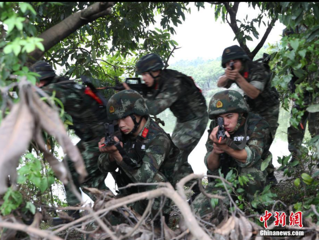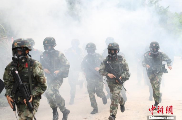 據(jù)中國新聞網(wǎng)報道,“全體隊員,準備實施武力突擊,殲捕房屋內(nèi)所有‘恐怖分子’!彪S著指揮員下達作戰(zhàn)指令,數(shù)十名特戰(zhàn)隊員在爆震彈、煙霧彈的掩護下,迅速接近目標,運用索降、破門、破窗等手段多面展開突擊,成功將6名“恐怖分子”擊斃。這是武警廣東省總隊二支隊運用紅藍模擬對抗系統(tǒng)進行掏黑窩子戰(zhàn)斗訓練的一幕。潘桂添 攝