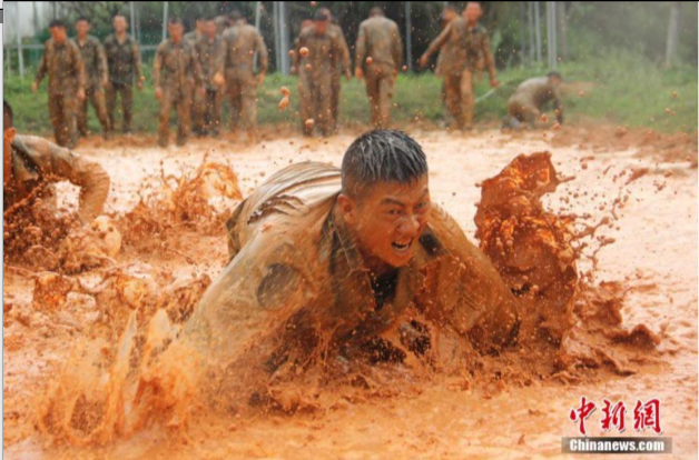特戰(zhàn)隊員在泥潭里進行水下憋氣訓練。