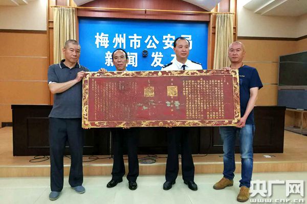 央廣網(wǎng)梅州4月11日消息(記者官文清 劉杰)今日(11日)上午,梅州市公安局召開新聞發(fā)布會,通報了梅州市蘭軒葉氏宗祠清代圣旨匾額(經(jīng)鑒定為三級文物)被盜案偵破情況。