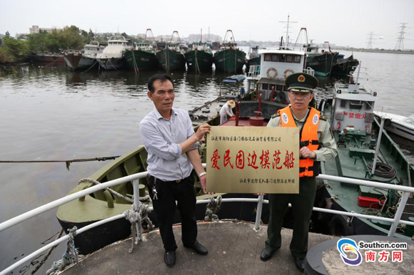 南方網(wǎng)消息:4月11日,汕頭邊防支隊海門邊防派出所向轄區(qū)內(nèi)一艘名為“海門漁港消防壹號”的義務消防船頒發(fā)“愛民固邊模范船”榮譽牌匾,以此表彰船主羊老五在長達20年的時間里,義務免費協(xié)助海門國家一級漁港的邊防武警從事防火、滅火以及漁船民管理工作。
