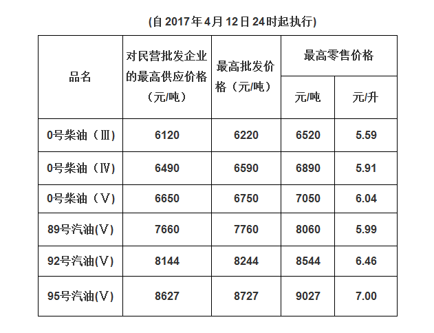 省發(fā)改委表示,根據(jù)國家成品油價(jià)格形成機(jī)制,結(jié)合近一段時(shí)期國際市場油價(jià)變化情況,國家發(fā)展改革委決定自2017年4月12日24時(shí)起提高國內(nèi)成品油價(jià)格,即在現(xiàn)行價(jià)格的基礎(chǔ)上,我省汽、柴油價(jià)格每噸分別提高200元和190元,平均每升提高約0.16元。調(diào)整后,我省成品油最高銷售價(jià)格可登錄網(wǎng)址http://www.gddrc.gov.cn/zwgk/tzgg/jggg/201704/t20170412_390885.html查閱。