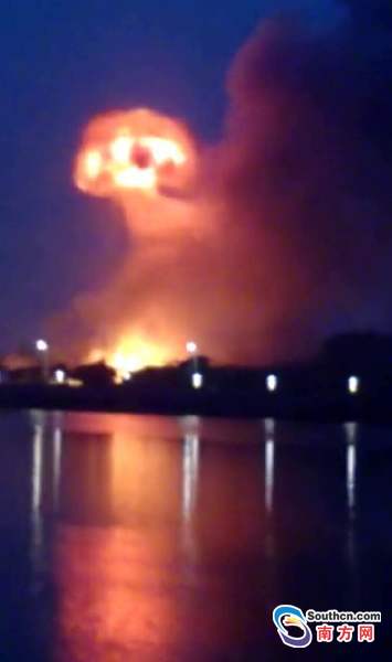 有群眾隔著河涌拍攝到爆炸燃燒的場(chǎng)景,火勢(shì)正在燃燒得越來越旺,突然火勢(shì)瞬間加大,隨之而來的是響亮的爆炸聲。天空立馬騰起一個(gè)燃燒的蘑菇云。事發(fā)地是位于洪梅新莊與梅沙交界處的一廢品收購(gòu)站,其后引爆了一輛油罐車的煤氣罐。