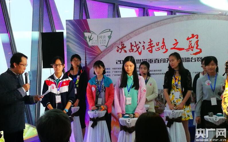 央廣網(wǎng)廣州4月23日消息(記者何偉奇) 4月23日,“決戰(zhàn)詩(shī)路之巔”2017廣州塔垂直闖關(guān)詩(shī)詞擂臺(tái)賽在廣州塔白云觀光大廳舉行。本次活動(dòng)從數(shù)萬(wàn)名參與在線答題的市民中篩選出45人到現(xiàn)場(chǎng)參加詩(shī)詞擂臺(tái)賽,選手經(jīng)過(guò)詩(shī)詞對(duì)句、填空、選擇等激烈的搶答比拼,最終來(lái)自華南師范大學(xué)文學(xué)院的研究生李漫榮獲本次賽事“狀元”稱號(hào)。
