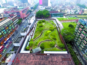 南越王宮署博物館整個樓頂修建成一個空中花園。廣州日報全媒體記者駱昌威 攝