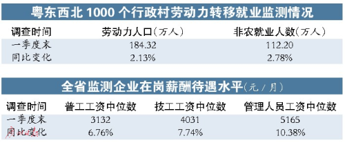 粵東西北1000個行政村勞動力轉(zhuǎn)移就業(yè)監(jiān)測顯示,勞動力人口184.32萬人,占總?cè)丝?1.57%,同比上升2.13個百分點;其中非農(nóng)就業(yè)人數(shù)112.20萬人,占勞動力人口60.87%,同比上升2.78個百分點。