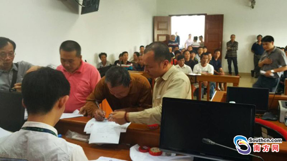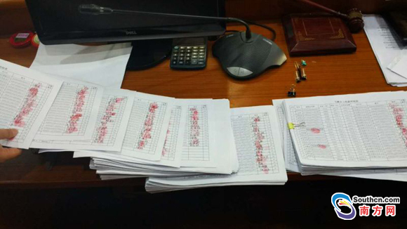 拿到補償款的工人們紛紛按下指模。(順德法院供圖)