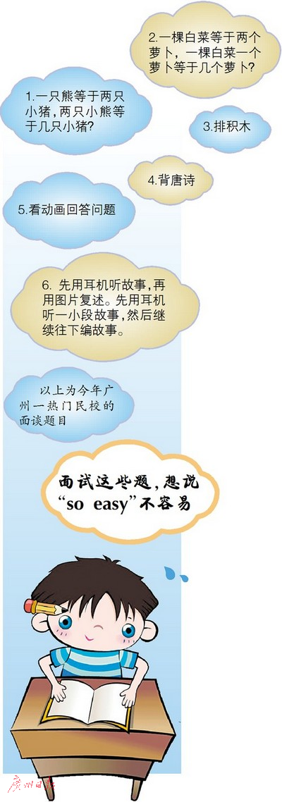 據(jù)廣州日報(bào)報(bào)道:日前,一則“上海幼升小面談,家長卻被考暈”的文章在朋友圈刷屏,上海一民辦小學(xué)在面談孩子的同時(shí),把家長集中在幾個(gè)大教室里,讓家長們用手機(jī)做題。很多家長做不出來,擔(dān)心給娃拖了后腿,郁悶不已。這一消息的真假還有待驗(yàn)證,不過,不少廣州家長卻“心有戚戚”,紛紛轉(zhuǎn)發(fā)。廣州各所民辦小學(xué)也將在近期陸續(xù)展開面談,“廣州的民辦學(xué)校也會(huì)考家長嗎?”不少家長擔(dān)心地問道,還打趣要不要緊急補(bǔ)補(bǔ)課。