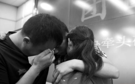 昨日,等來團圓的一家三口在廣州市公安局刑警支隊發(fā)布會現(xiàn)場抱頭痛哭。南都記者 陳志剛 攝