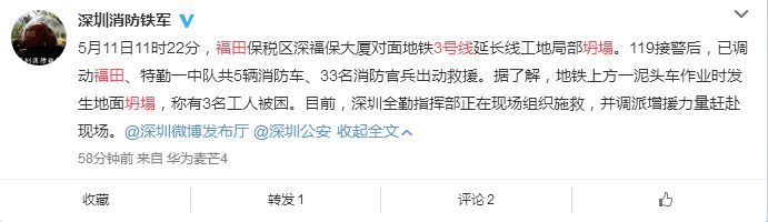 南方網(wǎng)訊 據(jù)深圳市公安消防支隊(duì)的官方微博@深圳消防鐵軍通報(bào),5月11日11時(shí)22分,福田保稅區(qū)深福保大廈對面地鐵3號線延長線工地局部坍塌。