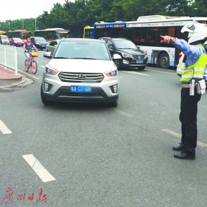 接到分控中心警情通報時,廣州交警執(zhí)勤民警歐警官正在中山大道楓葉路口疏導交通。