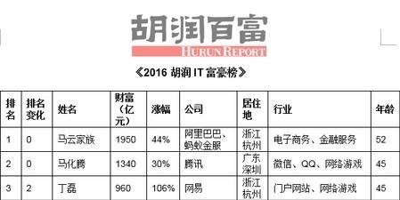 再來看看網(wǎng)易的丁磊,根據(jù)去年10月公布的《2016胡潤(rùn)IT富豪榜》中,丁磊的居住地顯示為浙江杭州,那他算不上是廣州富豪啦。