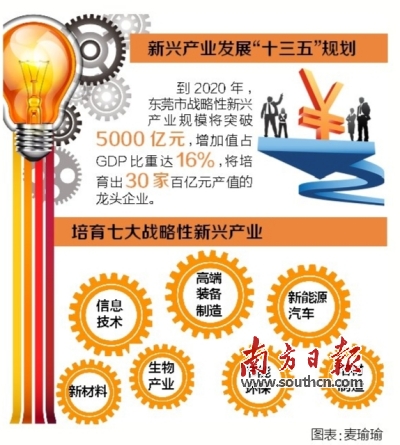 《規(guī)劃》提出,到2020年,東莞市戰(zhàn)略性新興產(chǎn)業(yè)規(guī)模將突破5000億元,增加值占GDP比重達(dá)16%。屆時(shí),東莞市將培育出30家百億元產(chǎn)值的龍頭企業(yè),形成新一代信息技術(shù)、高端裝備制造、新能源汽車(chē)等多個(gè)產(chǎn)業(yè)集群。梁維東要求,要重視規(guī)劃的實(shí)用性,相關(guān)部門(mén)要強(qiáng)化責(zé)任意識(shí),把規(guī)劃做精、做實(shí),進(jìn)一步強(qiáng)化規(guī)劃的指導(dǎo)意義。