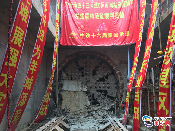 據(jù)南方網(wǎng)報(bào)道,繼上周首批列車在大連正式交付廣州地鐵后,十三號(hào)線首期又迎來(lái)另一重大節(jié)點(diǎn)工程:5月23日下午,十三號(hào)線首期【夏園—南崗】區(qū)間左線盾構(gòu)機(jī)經(jīng)過(guò)499天的掘進(jìn)后,在夏園站成功破墻而出。至此,該線路全線隧道貫通。