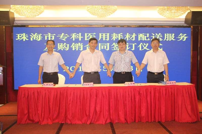 珠海市醫(yī)管中心(監(jiān)管方)、廣東海虹藥通電子商務(wù)有限公司(平臺(tái)方)、全市64家公立醫(yī)療衛(wèi)生和計(jì)生服務(wù)機(jī)構(gòu)(購(gòu)買方)、12家配送企業(yè)(銷售方)代表簽訂了四方合同。