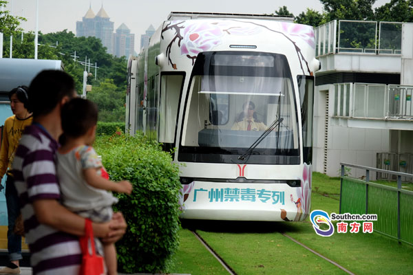 南方網(wǎng)訊 6月7日上午,廣州“禁毒專列”在廣州有軌電車廣州塔站上線,拉開了廣州今年開展“6.26”國際禁毒日系列活動的序幕。