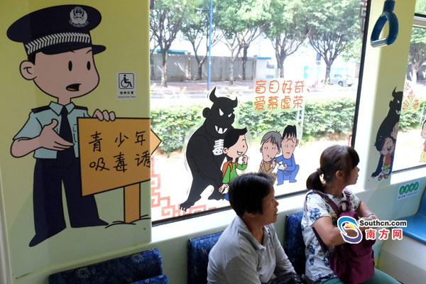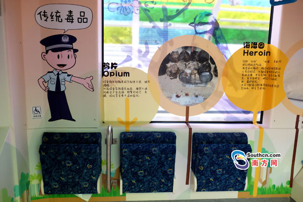“禁毒專列”運用了青年人喜聞樂見漫畫形象,生動活潑地圖解禁毒的常識,讓市民、青少年直觀地了解毒品的種類、毒品的傳播、毒品的危害和防范毒品、遠離毒品的方法,是一部很好的禁毒宣傳的流動教科書。