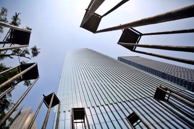 珠江新城CBD高樓下,一排直聳天空的雕塑“椅子”讓人浮想連翩。