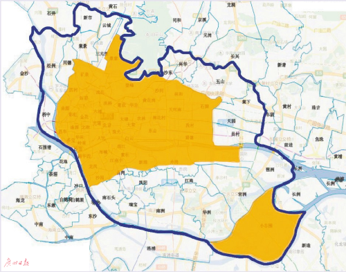 具體的擴(kuò)大區(qū)域包括:海珠區(qū)原限制區(qū)外所有區(qū)域;荔灣區(qū)橋中街;天河區(qū)沙東街、興華街、五山街、棠下街、天園街、員村街;白云區(qū)三元里街、云城街、新市街、棠景街、同德街、松洲街。(黃色區(qū)域?yàn)樵拗茀^(qū),藍(lán)色線區(qū)域?yàn)閿U(kuò)大后區(qū)域)
