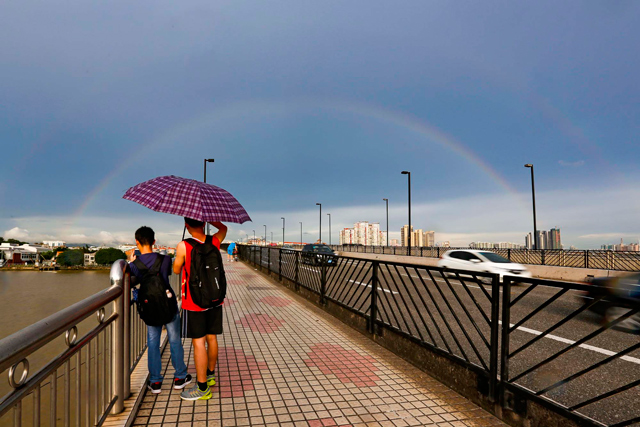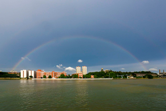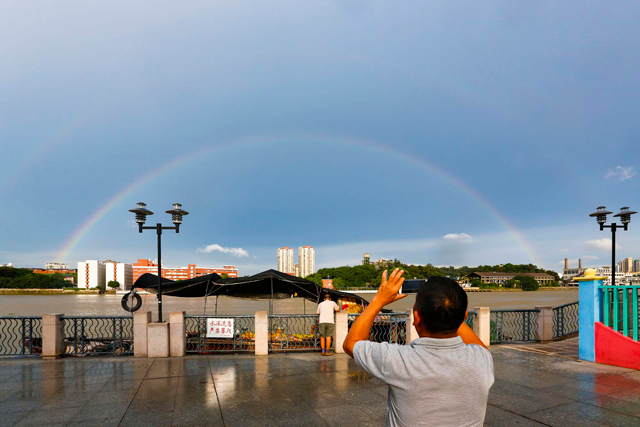 據(jù)廣州日?qǐng)?bào)報(bào)道,“哇!有彩虹。】炫!”昨日傍晚6時(shí)許,廣州時(shí)晴時(shí)雨,東邊的天空出現(xiàn)了一條大概四分之一個(gè)圓的拱形彩虹。彩虹出現(xiàn)時(shí)間近半個(gè)小時(shí),不少市民紛紛掏出手機(jī)拍攝眼前的彩虹美景,奈何彩虹跨度實(shí)在是大,很多手機(jī)相機(jī)都不能把整條彩虹囊括近鏡頭。這時(shí)有機(jī)智的市民把手機(jī)拍照模式切換到全景模式下,才拍出一條令人滿意的完整彩虹。