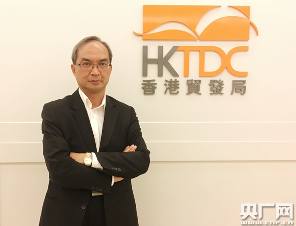 香港貿(mào)易發(fā)展局研究總監(jiān)關(guān)家明先生接受央廣記者專訪,攝影周晴。