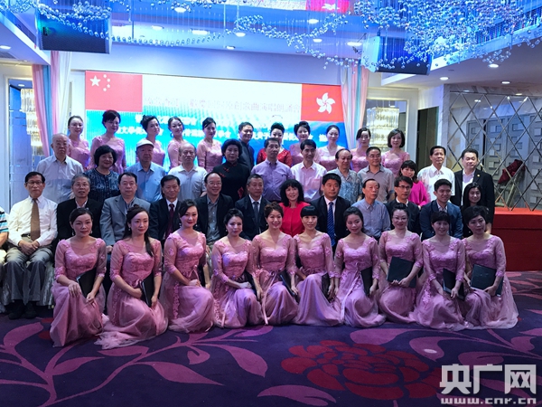 央廣網(wǎng)香港7月16日消息(記者劉志宏 周偉琪)由香港文化藝術(shù)界聯(lián)會(huì)(香港文聯(lián))和香港音樂(lè)文學(xué)學(xué)會(huì)主辦,香港中華文化總會(huì)、香港文學(xué)促進(jìn)協(xié)會(huì)、香港普通話教育學(xué)會(huì)和香港紅馬讀書(shū)會(huì)協(xié)辦的“放歌香江慶祝回歸原創(chuàng)歌曲歌詞演唱朗誦會(huì)”于今天在香港成功舉行。中央政府駐港聯(lián)絡(luò)辦宣傳文體部朱挺副部長(zhǎng)、香港立法會(huì)馬逢國(guó)議員,《紫荊雜志》楊勇先生社長(zhǎng)兼總編,香港文學(xué)促進(jìn)協(xié)會(huì)創(chuàng)會(huì)會(huì)長(zhǎng)張?jiān)妱υ?shī)家、香港中華文化總會(huì)副會(huì)長(zhǎng)皇甫星、深圳市作協(xié)評(píng)論家周思明先生,珠海市原創(chuàng)音樂(lè)協(xié)會(huì)合唱團(tuán)藝術(shù)總監(jiān)龍律成先生等港、深、珠的文學(xué)藝術(shù)界的120多人出席了本次活動(dòng)。