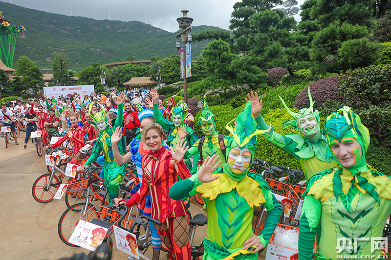 當(dāng)天,數(shù)百輛共享單車在珠海長(zhǎng)隆海洋王國(guó)中心湖廣場(chǎng)齊齊出發(fā),馬戲演員及廣大市民一起騎行到第四屆中國(guó)國(guó)際馬戲節(jié)的舉辦地點(diǎn)——珠海長(zhǎng)隆橫琴島劇院,既是向珠海致敬,同時(shí)也是向廣大市民發(fā)出邀請(qǐng)。