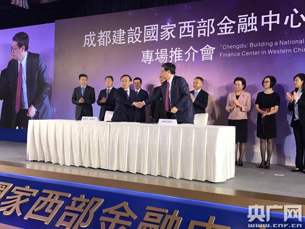 推介會上,成都市政府與香港貿(mào)發(fā)局簽署《兩地經(jīng)貿(mào)合作備忘錄》,與聯(lián)交所、中金公司、中銀香港、工銀亞洲、南洋商業(yè)銀行等機構(gòu)簽訂合作協(xié)定。