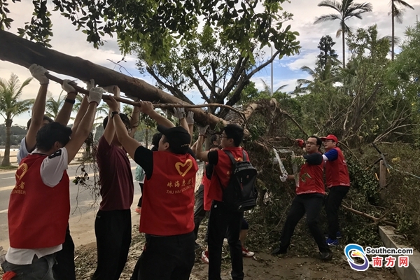 鋸木頭、拖樹枝、清垃圾,珠海市青聯(lián)的年輕人們分為6個(gè)小組,干起體力活兒來同樣毫不含糊,24日下午至25日上午,市青聯(lián)6個(gè)小組在團(tuán)市委的統(tǒng)籌指揮下,依托各團(tuán)屬服務(wù)陣地和志愿服務(wù)隊(duì),鏈接本組資源,對(duì)接轄區(qū)需求,廣泛開展了道路清障、社區(qū)清潔等一系列志愿服務(wù)活動(dòng)。