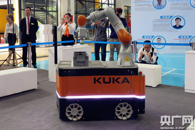 KUKA的最新產品“KMR”,可以全向移動,達到正負1毫米的定位精度,上面有人機協(xié)作機器人,相當于一個移動的工作站。