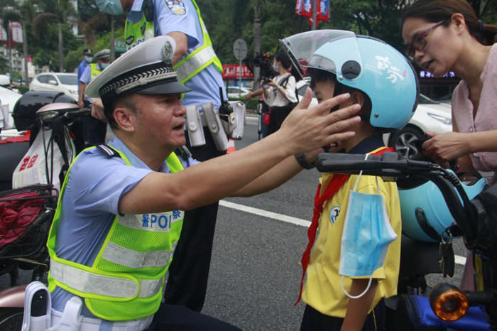 對(duì)電動(dòng)車(chē)不帶頭盔和行人闖紅燈的行為進(jìn)行勸阻。鶴山交警聯(lián)合志愿者在城區(qū)各個(gè)路口都設(shè)置了勸導(dǎo)崗,對(duì)行人闖紅燈和電動(dòng)車(chē)不戴頭盔等違法行為都進(jìn)行勸阻,告知其危害。同時(shí),贈(zèng)送了一大批頭盔給鶴山市民。