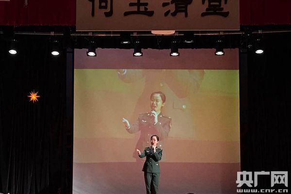 部隊女戰(zhàn)士展示學生們送給她的禮物