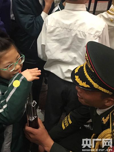 現場的互動可以看出,學生們對解放軍的一切都感到好奇,從服飾到日常生活,從身高到體重。其中不少學生跑到軍人面前比身高,幷和他們握手、擁抱。